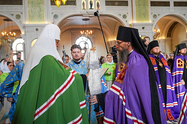 Затем Святейший Владыка обратился к участникам богослужения с Первосвятительским словом.