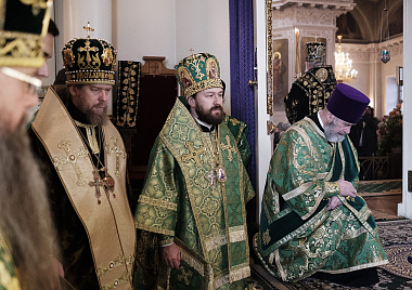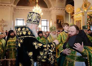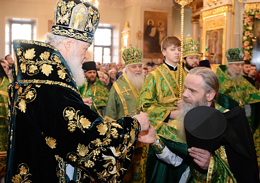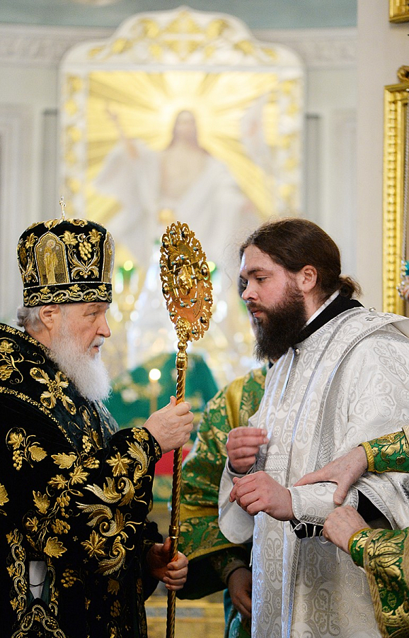 За Литургией Святейший Патриарх Кирилл рукоположил монаха Илариона (Карандеева), насельника Сретенского ставропигиального мужского монастыря Москвы, в сан иеродиакона.
