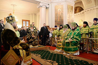 На богослужении присутствовали: председатель Комитета по международным делам ГД ФС РФ Л.Э. Слуцкий; временно исполняющий обязанности губернатора Кировской области И.В. Васильев; руководитель Департамента национальной политики, межрегиональных связей и туризма г. Москвы В.И. Сучков.
