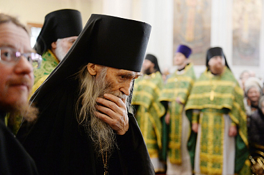 Проповедь перед Причастием произнес игумен Иона (Займовский), насельник Данилова монастыря.