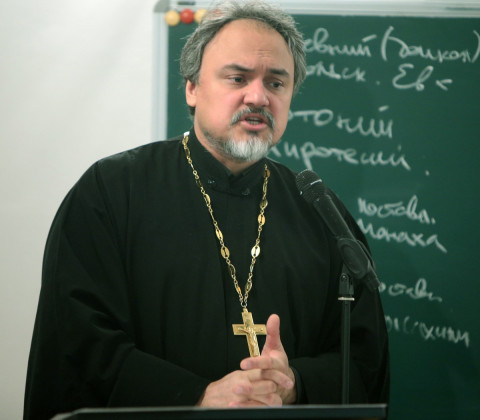 Старший научный сотрудник НИУ ВШЭ, кандидат исторических наук А.Ю. Виноградов в докладе «К вопросу о становлении акимитского богослужения» рассказал об основателе непрерывного богослужения св. Александре Акимите, а также о том, как формировалось, из каких частей состояло и действительно ли было непрерывным акимитское богослужение.