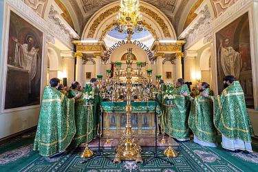 17 марта 2024 года, в Неделю сыропустную, воспоминание Адамова изгнания (Прощеное воскресенье), день памяти благоверного великого князя Даниила Московского (1303), Святейший Патриарх Московский и всея Руси Кирилл совершил Божественную литургию в Троицком соборе Данилова ставропигиального мужского монастыря г. Москвы.