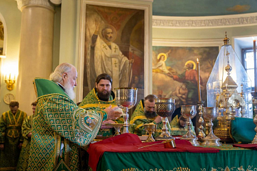 По прибытии в собор Предстоятель Русской Православной Церкви поклонился ковчегу с частицей мощей благоверного князя Даниила Московского.