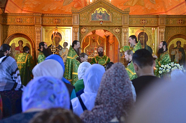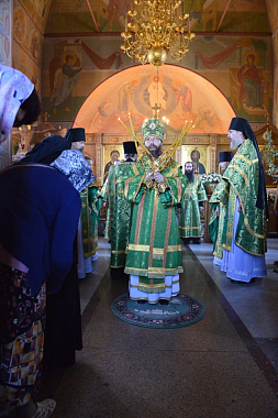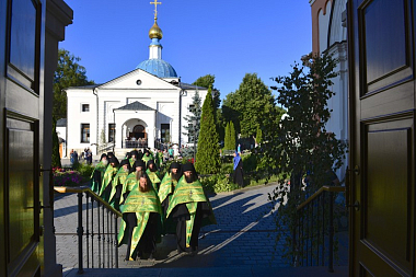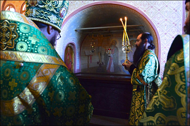 Богослужение возглавил наместник обители епископ Можайский Леонид в сослужении братии в священном сане.