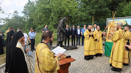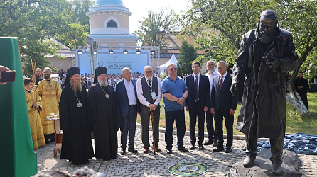 Затем состоялось торжественное открытие памятника Ф. М. Достоевскому (автор монумента – народный художник России Салават Щербаков), после которого наместником Оптиной пустыни епископом Можайским Иосифом был отслужен молебен преподобным старцам Оптинским.