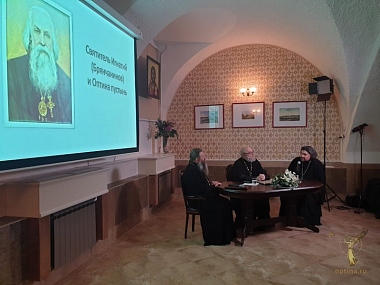 Другой соведущий игумен Лаврентий (Балаев), братский духовник, добавил к этому, что на сегодняшний день труды святителя Игнатия (Брянчанинова), пожалуй, одни из наиболее читаемых в монастыре, с которых начинает каждый послушник, придя в Оптину пустынь.