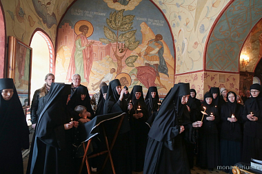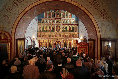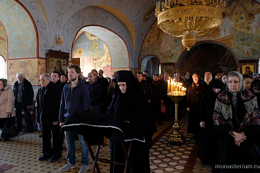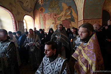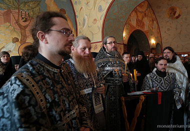 В этот день Литургию Преждеосвященных Даров в монастыре возглавил и.о. наместника Заиконоспасского ставропигиального мужского монастыря иеромонах Даниил (Константинов) в сослужении братии и духовенства Акатовской обители.