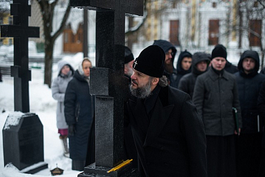 Заупокойное богослужение возглавил наместник Троице-Сергиевой Лавры епископ Сергиево-Посадский Парамон в сослужении братии монастыря в священном сане.