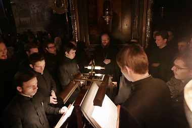Церковные песнопения Знаменным распевом исполнил хор Троице-Сергиевой лавры под управлением благочинного обители архимандрита Павла (Кривоногова).