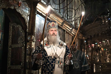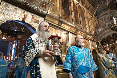Среднюю Божественную литургию в Троицком соборе монастыря возглавил председатель Синодального отдела по монастырям и монашеству архиепископ Каширский Феогност.