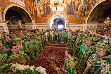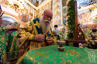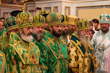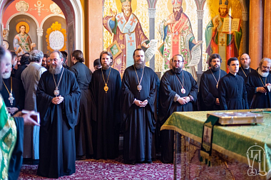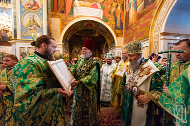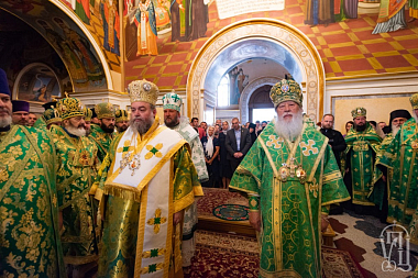 Его Блаженству сослужили иерархи Поместных Православных Церквей: митрополит Карфагенский Мелетий (Александрийская Церковь), митрополит Ловчанский Гавриил (Болгарская Церковь), епископ Моравичский Антоний (Сербская Церковь), епископ Гайновский Павел (Польская Церковь), митрополиты, архиепископы и епископы Украинской Православной Церкви; архимандрит Иероним (Пилиотис) и иеромонах Варнава (Хрисанф) (Кипрская Церковь), протоиерей Любомир Казашки (Болгарская Церковь), протоиерей Андрей Левчак (Польская Церковь), протоиерей Назарий Полатайко (Православная Церковь в Америке), иеродиакон Димитриан (Пеца) (Кипрская Церковь), братия обители и другие гости в священном сане.
