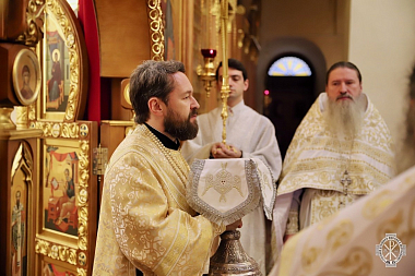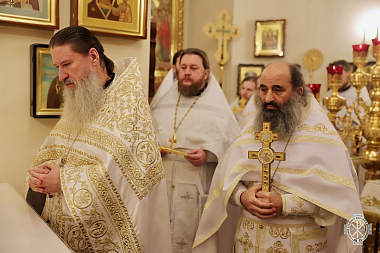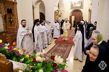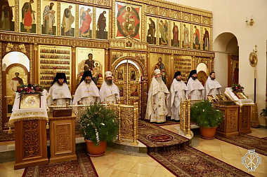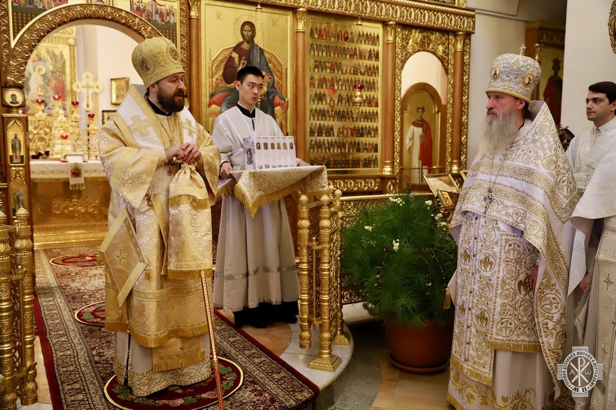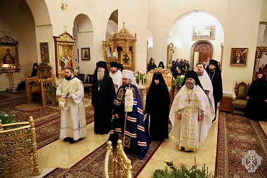За Литургией в монастырском соборе в честь Всех святых Церкви Русской архипастырю сослужили начальник Миссии архимандрит Александр (Елисов), клирики Русской духовной миссии и Горненского монастыря.