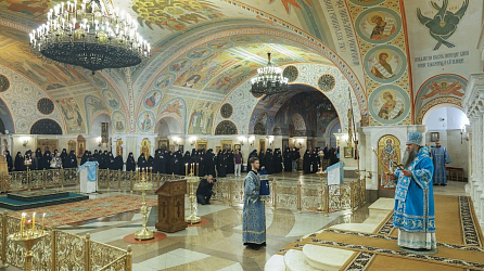 Перед началом Собрания игуменов и игумений Русской Православной Церкви в нижней Преображенской церкви Храма Христа Спасителя была совершена Божественная литургия