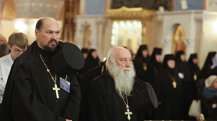 Перед началом собрания в нижней Преображенской церкви кафедрального соборного Храма Христа Спасителя была совершена Божественная литургия.