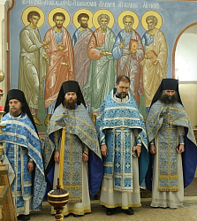 Богослужение совершили: председатель Синодального отдела по монастырям и монашеству, наместник Донского ставропигиального мужского монастыря г. Москвы митрополит Каширский Феогност; председатель Комиссии по организации жизни монастырей и монашества Межсоборного присутствия Русской Православной Церкви митрополит Нижегородский и Арзамасский Георгий; митрополит Саранский и Мордовский Зиновий; столичное духовенство.