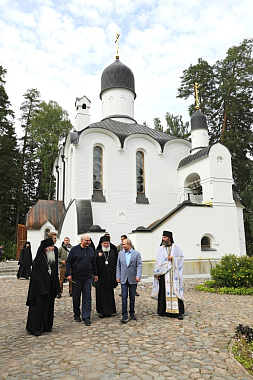 Высоких гостей встречали наместник монастыря епископ Троицкий Панкратий, директор духовно-просветительского центра «Свет Валаама» игумен Мефодий (Петров), насельники обители.