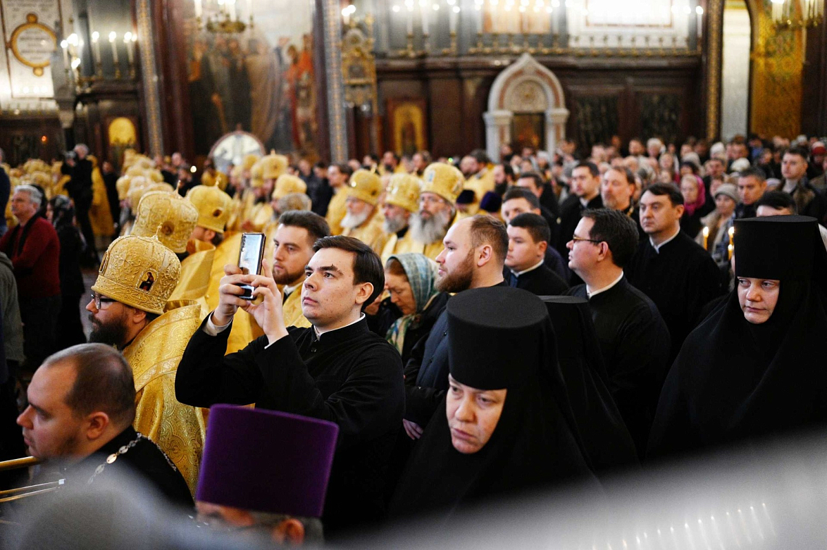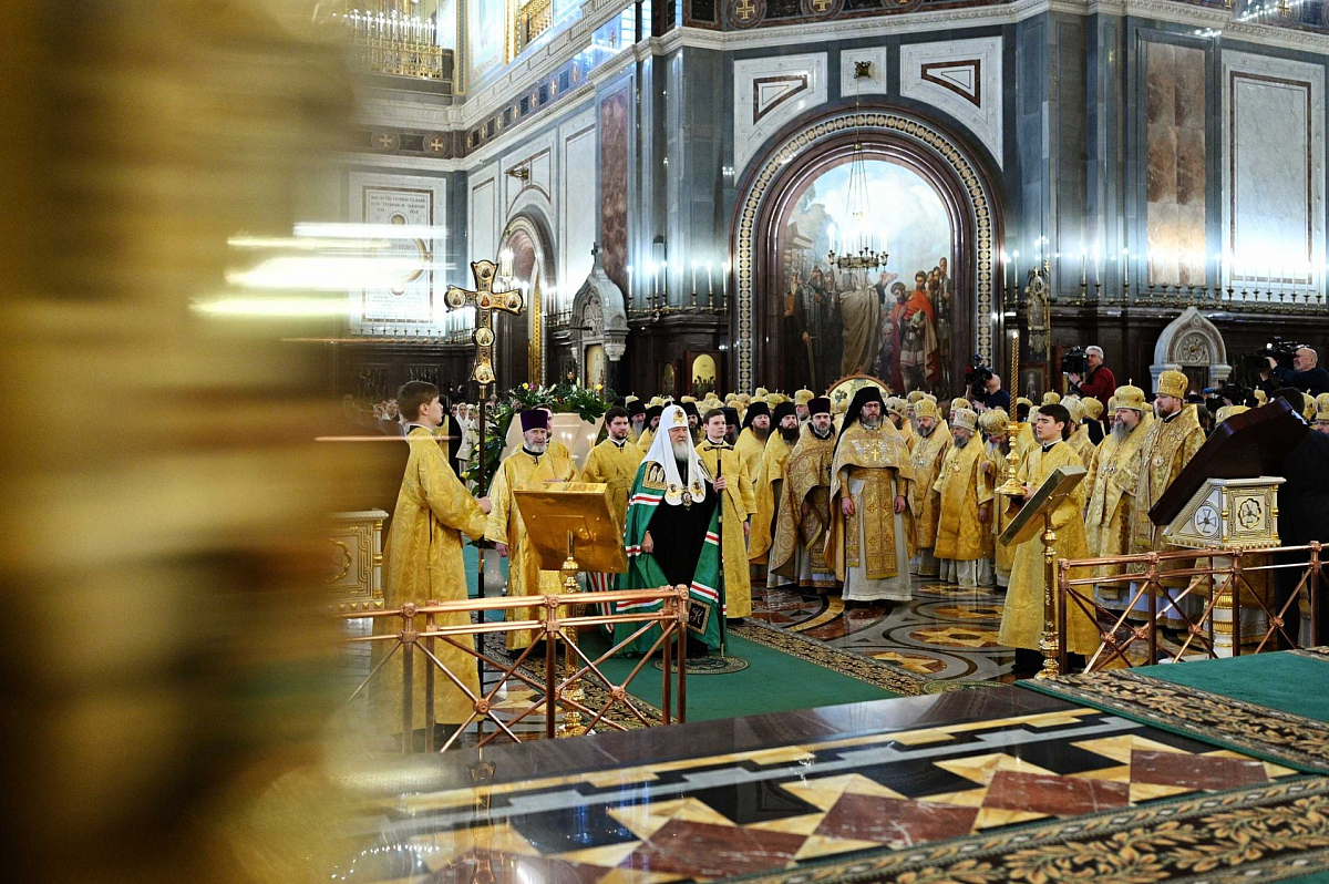 На телеканалах «Союз» и «Спас» шла прямая трансляция Патриаршего богослужения.