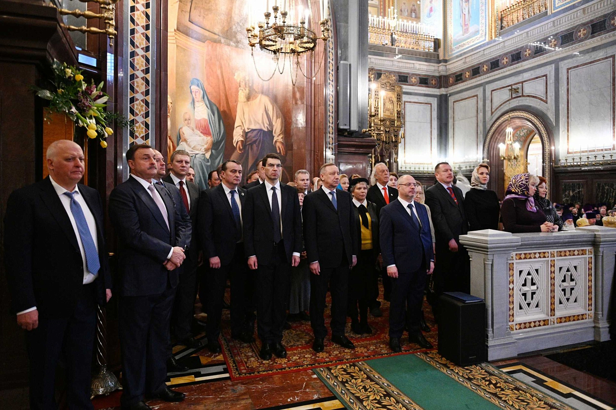 Торжественное богослужение посетили: полномочный представитель Президента РФ в Центральном федеральном округе И.О. Щеголев; председатель Комитета Государственной Думы ФС РФ по международным делам Л.Э. Слуцкий; председатель Комитета Государственной Думы ФС РФ по развитию гражданского общества, вопросам общественных и религиозных объединений С.А. Гаврилов; губернатор Санкт-Петербурга А.Д. Беглов; временно исполняющий обязанности главы Чувашской Республики О.А. Николаев; почетный член Российской академии художеств народный артист Российской Федерации И.Р. Резник; представители государственных и общественных организаций.