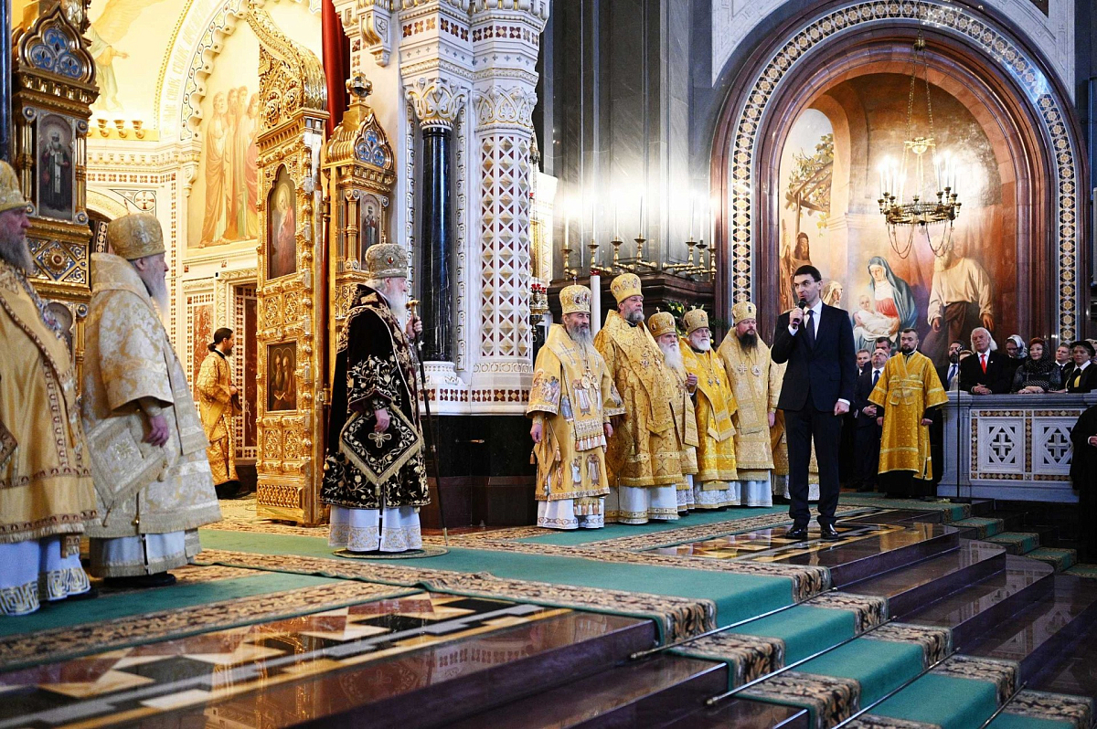 В сугубую ектению были включены особые прошения о ныне чествуемом Святейшем Патриархе Кирилле и Церкви Русской, им ведомой.