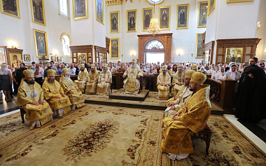 Его Высокопреосвященству сослужили наместник Успенской Киево-Печерской лавры митрополит Вышгородский и Чернобыльский Павел, митрополит Луганский и Алчевский Митрофан, управляющий делами Украинской Православной Церкви митрополит Бориспольский и Броварской Антоний, митрополит Святогорский Арсений, митрополит Горловский и Славянский Митрофан, митрополит Изюмский и Купянский Елисей, архиепископ Краснолиманский Алипий, архиепископ Макеевский Варнава, архиепископ Ровеньковский и Свердловский Пантелеимон, архиепископ Северодонецкий и Старобельский Никодим, архиепископ Львовский и Галицкий Филарет, епископ Добропольский Спиридон, святогорское духовенство и гости обители в священном сане.