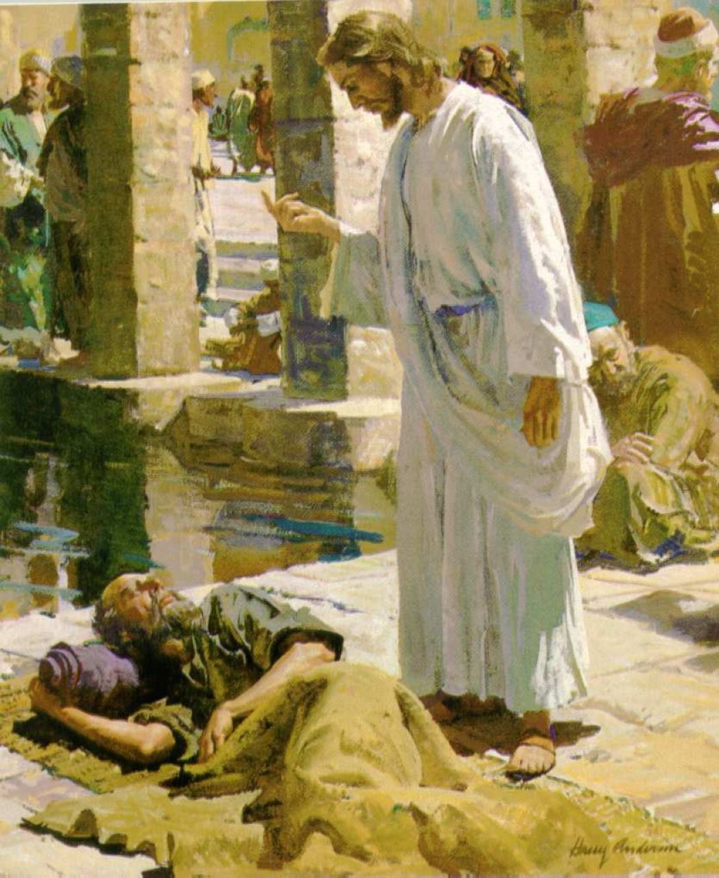 В это воскресенье мы читаем Евангельский отрывок о расслабленном, тридцать восемь лет лежавшем и страдавшем в своей болезни. Этот человек чувствовал себя совершенно беспомощным и видел, что никто из людей не намерен оказать ему помощь. Однако он не терял надежды на Бога и продолжал смиренно и терпеливо ждать исцеления. Смирение, безропотное терпение и упование привлекли милость Господа, пожелавшего даровать расслабленному здравие не только телесное, но и душевное.
