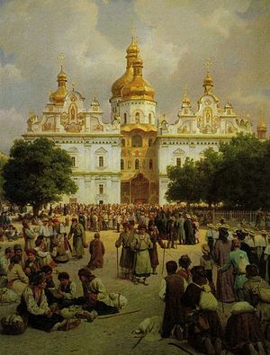 В середине XIV века на большей части территории современной Украины начинается литовская экспансия. Однако, несмотря на то, что литовский князь Ольгерд, которому подчинялись Киевские земли, первоначально исповедовал языческую веру, а затем, после принятия Кревской унии между Литвой и Польшей, началось усиленное насаждение католицизма, Печерская обитель жила в этот период полноценной жизнью.