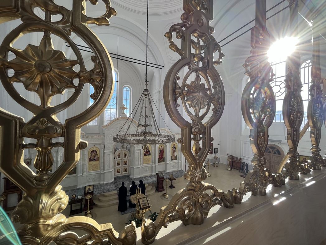В минувшем году отмечалось 150-летие образования обители и 140-летие первого освящения главного соборного храма в честь Казанской иконы Божией Матери, где после закрытия и поругания монастыря около 100 лет не совершались богослужения. И вот 5 ноября 2022 года состоялось освящение возвращенного к жизни собора, а в прошлом месяце по благословению Святейшего Патриарха Кирилла во внимание к трудам по восстановлению Казанского монастыря Вы были награждены орденом Русской Православной Церкви преподобной Евфросинии, великой Княгини Московской II степени. Казанский собор восстановлен, а собор Андрониковой иконы Божией Матери – в каком он сейчас состоянии?