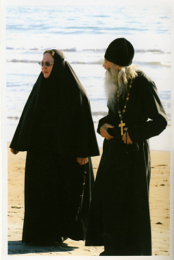 Спрашивали, но я старалась объяснить, что это было не «вдруг». О чем, кстати, я рассказываю и в документальной ленте о маме «Родство земное, родство небесное», снятой Калужской студией «Ника ТВ» (автор – Светлана Азатова). Когда мама выбрала одним из своих паломнических маршрутов Дивеево, на святой Богородичной Канавке у нее произошла встреча со старчиком, который первым предсказал ей монашество. Соседка по гостинице прошла мимо него, а мама подумала, что ему нужно помочь: положила одну монетку, другую и услышала: «Постой, сестра!» Старчик неожиданно стал говорить ей такие вещи, о которых она даже помыслить не могла. О предстоящем монашестве и будущих победах на кинофестивалях. Мама слушала его в рыданиях. Потом всё это к ней пришло – и монашество, и награды на всероссийских и международных конкурсах, полученные за фильмы о возрождении Православия в нашей стране, а также за фильмы о православных монастырях и подвижниках далекой Америки, где она побывала дважды. Первый раз – с небольшой съемочной группой по личному приглашению Первоиерарха Русской Православной Церкви Заграницей (РПЦЗ) митрополита Лавра, во второй – со своим духовником схиархимандритом Илием (Ноздриным), что произошло за несколько лет до воссоединения двух ветвей нашей Церкви после 80-летнего раскола. Но вернусь в Дивеево. В храме паломникам подарили иконочки преподобного Серафима Саровского. Мама посмотрела на иконочку и... узнала старчика. Подумала, что непостижимым дивным образом от самого батюшки Серафима получила благословение на монашество.