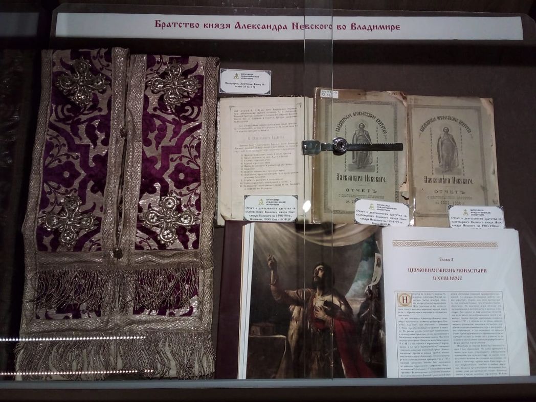 Мы смогли это сделать только по Промыслу Божиему. Не из чего было делать. Нам передали экспонаты из музея, который ранее сложился в Боголюбском женском монастыре Рождества Богородицы. Сестры помогли –у них уже были связи, коллекции, опыт. Оттуда нам передали археологическую часть. Сестры вышили схиму, чтобы мы могли ее экспонировать. Связали нас с реконструкторами, которые занимаются эпохой Александра Невского. То есть большую часть экспозиции помогли нам сделать они.