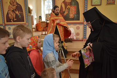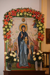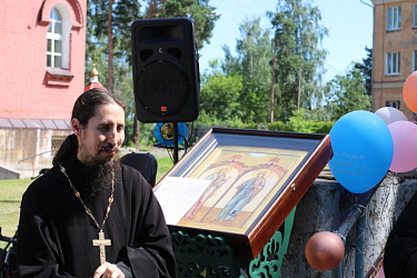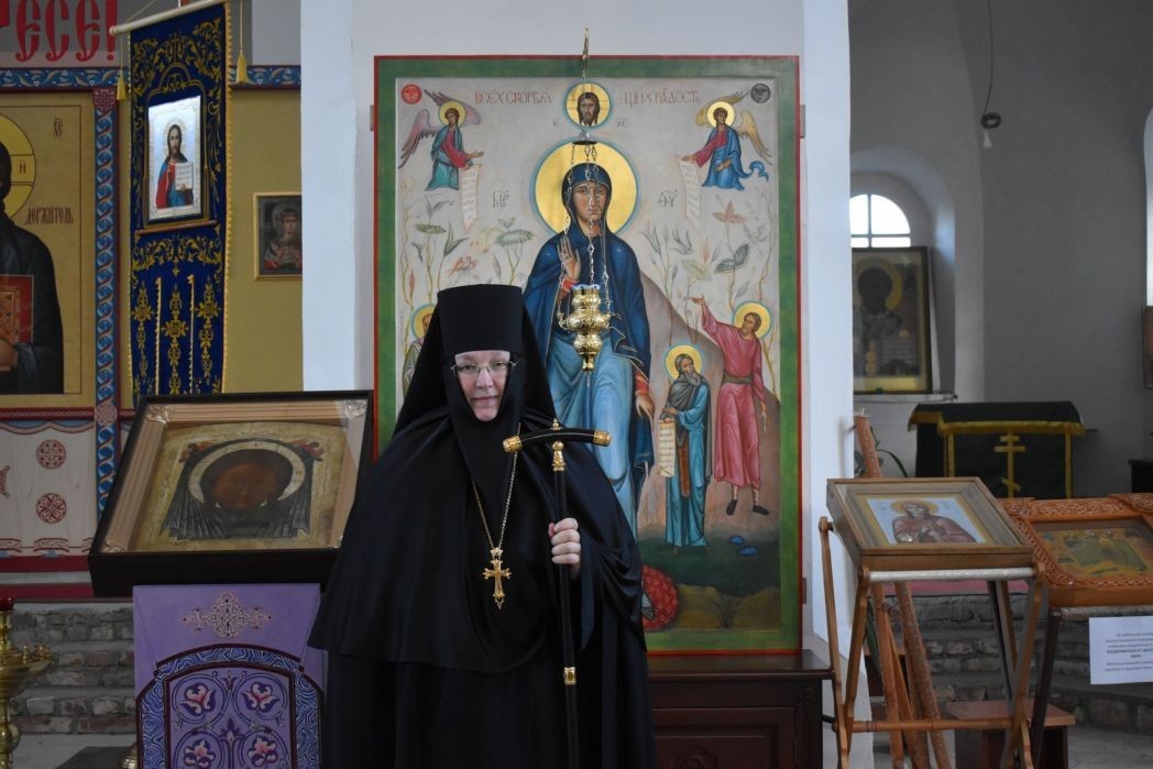 Нужно было постепенно менять ситуацию, но не потерять прихожан. Мне было важно объединить людей не только во время богослужения, но и после него. Хотелось создать дружный монастырский приход. Именно поэтому на первом этаже переданного нам здания мы открыли библиотеку, и в ней стали проводить встречи со священниками епархии, литературные лекции и другие мероприятия. При монастыре открылся Центр защиты материнства и детства «Дар жизни», действовала (и по сей день действует) воскресная школа для детей из детского дома, а потом – и для детей прихожан. Создали народный хор, который стал петь на ранней Литургии. Параллельно мы пытались заниматься реставрацией Вознесенского храма, и в 2017 году удалось совершить в нем первое богослужение, хотя служили без иконостаса. Служба в большом храме так нас вдохновила, что буквально за несколько месяцев удалось собственными силами воздвигнуть временный иконостас, и богослужения стали совершаться в Вознесенском соборе. По благословению митрополита Владимирского Евлогия и епископа Нижнетагильского Иннокентия я съездила в Муром, чтобы привезти частицы мощей святых Петра и Февронии, покровителей и семьи, и монашествующих. Были написаны новые иконы: Божией Матери «Всех скорбящих Радость» и святых благоверных князя Петра и княгини Февронии. Вообще идея привезти их мощи и написать их образ у меня созрела при мыслях о воспитанниках детского дома. Подумалось: ребята смогут обращаться к святым чудотворцам с просьбой о возвращении в семью – родную или приемную.