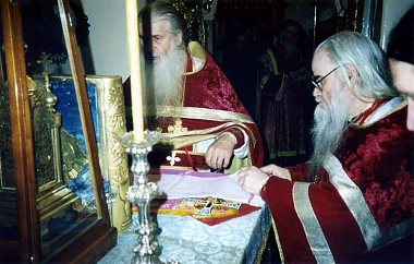 В начале весны 1992 года отец Иоанн пригласил меня зайти к нему в келью. Когда я пришел, то батюшка вручил мне завернутую в холщевое полотно икону Божией Матери «Умиление» Серафимо-Дивеевскую, которая, как он сказал, была благословением старца Глинской пустыни схиархимандрита Серафима (Романцова †1976), и попросил поместить ее в алтаре Благовещенской церкви на простенке под потолком, над престолом: «Там ее никто не достанет», – добавил батюшка с хитрой улыбкой.