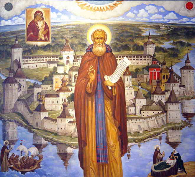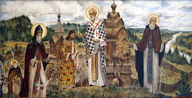 Последнюю свою картину я написал в 1991 году, «Соловецкие святые» [1], и больше почти ничего не писал. Только если по какой-то особой нужде – например, кому-то в подарок. Иконы я начал писать, но опять же по необходимости, ведь из храма все было украдено. Поэтому теперь здесь почти все иконы моей работы. Хотя я, в общем-то, никакой не иконописец. Я не пишу в иконописной технике, тяжелое это дело, и я его не освоил. Я писал эти иконы как картины.