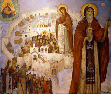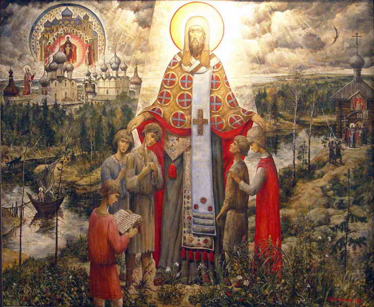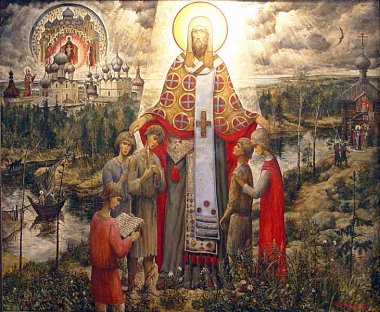 Эту православную выставку мы возили по стране с помощью священников, с ней нас просили приехать епископы в Новосибирск, Томск, Иркутск. Потом мы должны были поехать в Кемерово, но тут закончились деньги на эти переезды. Картины большие и их много – девать их было некуда. Выставку оставил в Угличе тогдашний директор музея Виктор Иванович Ерохин. Мы с ним тогда подружились, потом я его окрестил, когда уже стал священником. И он спас эти мои картины. До этого они какое-то время в Москве в гараже у моего друга висели под потолком, и на них протекала вода с крыши. Надо сказать, что у нас в стране все вроде бы повернулось лицом к Церкви, но у меня с моими картинами всегда были проблемы, которые остаются до сих пор и с показом, и с публикацией. «Слишком русские» – как мне кто-то сказал.