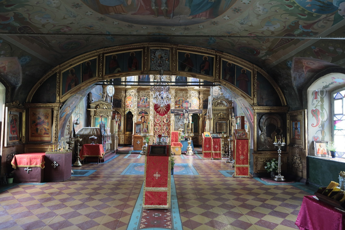 Мы когда-то жили в Москве. У меня была однокомнатная квартира с окнами на храм мученика Трифона на «Рижской». И мы искали место для мастерской. Необходимо было больше пространства, чтобы картины писать. В Москве не получилось мастерскую заиметь, и мы стали искать где-то на стороне. Как-то с нашими друзьями попали в Ярославскую область, в эти леса, и здесь я увидел этот храм. Он и тогда был действующим и вообще никогда не закрывался. Батюшка здесь был и три-четыре женщины при нем. Народ, живущий рядом, приезжал на праздники. Приехать сюда было сложно, приходилось довольно долго идти пешком по дороге, по грязи или снегу. И вот это уединенное место стало для нас убежищем от городской жизни. Церковнославянский язык мы уже знали, потому что я тогда писал картины с житиями святых, и мне надо было читать о них, мы доставали старые книги, и по ним изучили церковнославянский. Стали ходить в этот храм, жена моя, будущая матушка, стала помогать старушкам на клиросе, а батюшка, отец Иоанн Семенов, взял меня в алтарь, я ему там помогал. И потихоньку мы начали тут осваиваться. Мы были только недавно крещены. Я в 34 года крестился, нас с женой вместе дома крестили.