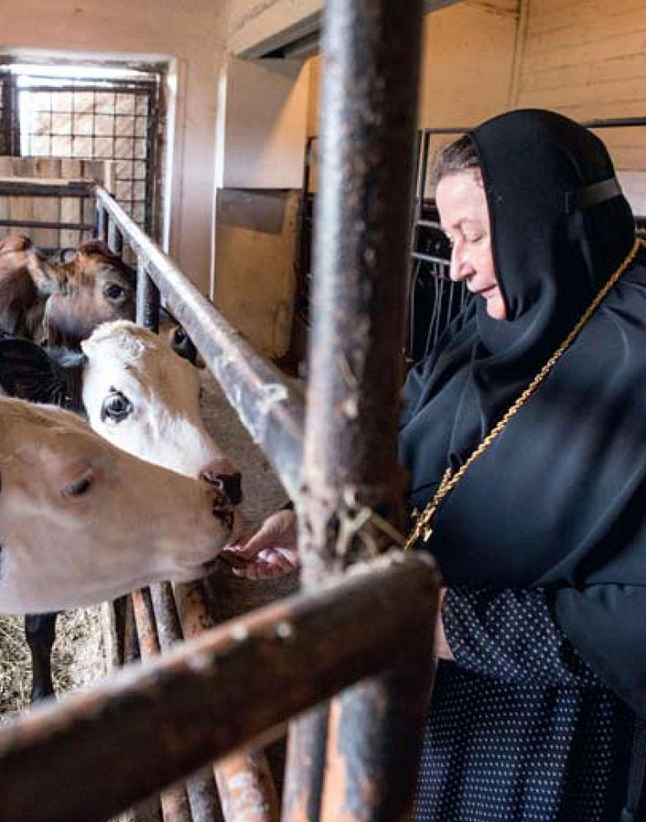 Техника, наемные рабочие – немалое подспорье, но в основном сестры трудятся сами, полностью обеспечивая нужды за счет собственного хозяйства: фруктовый сад, огород, пасека, курятник, коровник, молочный и сырный цехи, просфорня, пекарня, иконописная мастерская. А некоторым монахиням, ни много ни мало, за 70! Зато жизни и силы в них – откуда что берется?!