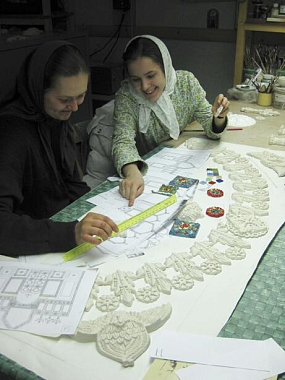 В 2008 и 2010 годах несколько сестер с отличием закончили обучение в Талдомском колледже декоративно-прикладного искусства и народных промыслов, где обучались рисунку, живописи и композиции, осваивали технику акварели. Неоднократно работы сестер монастыря выставлялись в Талдомском музее и колледже (ныне училище) ДПИ и НП. В качестве дипломных работ было решено начать создание декоративного оформления деревянно-керамического иконостаса в храме Божией Матери «Утоли моя печали» и мозаично-керамического иконостаса для домового храма святых мучениц Веры, Надежды, Любови и Софии.