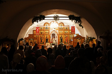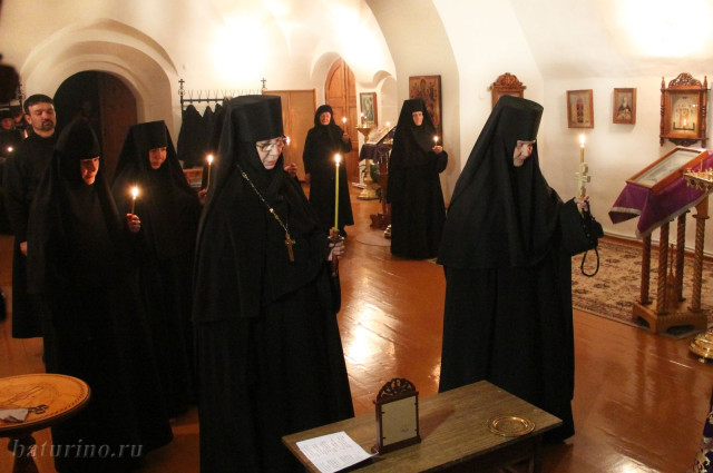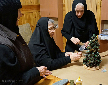 Обустраивать монашескую жизнь начали четыре девушки, которым пришлось осваивать монастырский устав одновременно с разбором груды строительного мусора. «Помню, сидим на бревне, вокруг грязь, остатки фундаментов, а так хорошо на душе…», – вспоминала впоследствии одна из монахинь. 18 декабря 2000 года в батуринской обители состоялся первый монашеский постриг. Сейчас в обители около тридцати сестер – монахини, инокини, послушницы, есть трудницы. Заведено основательное хозяйство, и помимо храмовых послушаний у насельниц много забот в трапезной, на огороде, на скотном дворе.