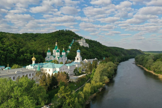 Святогорье особо этим отличается: горы, поросшие лесами, холмы, перелески, Донец, скалы меловые – все это настолько живописно, такую красоту и гармонию составляет и наводит на мысль: почему же, как правило, монастыри строились в таких пустынных, но именно красивых, прекрасных по природе местах.