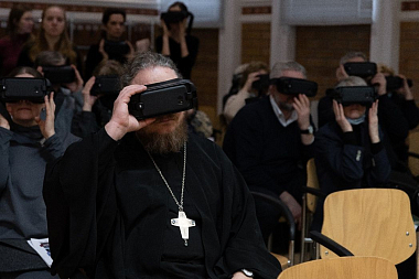 Центр изучения истории и наследия Московского Златоустовского монастыря любит делать подарки участникам Чтений. В этот раз подарком стала экскурсия по территории Достопримечательного места «Златоустов монастырь» с VR-очками. Участники форума смогли переместиться в фотореалистичное виртуальное пространство и увидеть, как в современном городском ландшафте оживает древний монастырь. Поднялись они на колокольню – конечно, виртуально (ее последней из монастырских строений разрушили) – и посмотрели на территорию монастыря с высоты птичьего полета. Впечатляюще! А другим приятным подарком стали выступления ансамбля «Sei cantanti» (в переводе – «Шесть певцов»), которым руководит Елена Щеглова, преподаватель отделения «Дирижирование академическим хором» Государственного музыкально-педагогического института имени М.М. Ипполитова-Иванова. Благодаря выпускницам знаменитой Ипполитовки, к слову сказать, недавно отметившей свой столетний юбилей, участники Чтений словно бы погрузились на какие-то мгновения в атмосферу минувших веков и явно себе представили, что могло бы звучать в стенах прославленной обители. Этому, думается, помогли также доклад Е.Д. Щегловой «История русского церковно-певческого искусства: «звучащие фрески» и доклад кандидата искусствоведения, ведущего специалиста Мемориального музея-квартиры Ел. Ф. Гнесиной (при РАМ имени Гнесиных) Н.А. Потемкиной «Монастырские певческие обиходы 1-й половины XVIII века из московского Златоустова монастыря и нижегородской Флорищевой пустыни».