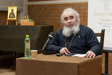Работа богословской секции во второй день конференции, направленная на изучение творений одного из трех Вселенских учителей Церкви, тоже продолжалась с утра до вечера. Духовное наследие Святителя настолько значимо и актуально для верующих христиан, так велико было его почитание в разные эпохи, что последнее нашло свое отражение в церковной гимнографии. Доклады на эту тему можно выделить в отдельный блок. Назову их: «Иоанн Златоуст в византийском гимнографии» (подготовила ведущий научный сотрудник Дома русского зарубежья имени А. Солженицына, старший научный сотрудник ИМЛИ РАН, ПСТГУ А.Ю. Никифорова); «О житийном источнике памятника славяно-русской гимнографии XV века "Кондаки и икосы святителю Иоанну Златоусту"» (докладчик – студент магистратуры МДА священник Иоанн Перминов,); «Преподобный Никодим Святогорец как почитатель и воспеватель святителя Иоанна Златоуста» (докладчик – кандидат исторических наук, старший научный сотрудник Института всеобщей истории РАН, доцент кафедры систематического богословия и патрологии богословского факультета ПСТГУ О.А. Родионов).