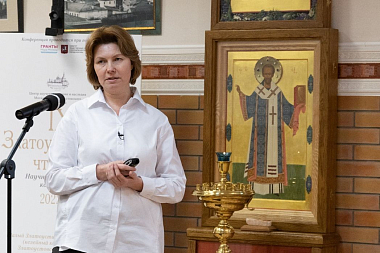 Забегая вперед, скажу: В.А. Тимкина присутствовала на IX Златоустовских чтениях, и ее выступление, посвященное двум юбилеям нынешнего года, стало достойным завершением первого дня конференции. Интересно было слушать о братстве святителя Петра Митрополита, чей духовный потенциал оказался настолько велик, что сегодня в этом святом месте четко просматривается преемственность тех форм его деятельности, которые оказались важны и в наши дни. Но вернемся к докладу А.П. Хондзинской. Анастасия Павловна сообщила: минувший год охарактеризовался для Центра не столько поиском новых архивных данных, сколько систематизацией уже имеющихся документов, что тоже привело к новым интересным открытиям. Рамки материала не позволяют подробно о них рассказать, поэтому приведу лишь один факт. Открылось, засверкало яркими красками имя, прежде здесь не звучавшее. Имя благотворительницы – иркутянки Юлии Ивановны Базановой, впоследствии переехавшей в Москву. Сколько миллионов вдова богатого купца (скромная и щедрая, как писали о ней современники), направила на дела милосердия! А Златоустовский монастырь привлек ее внимание тем, что в 1821 году в нем появился одним из первых в Российской земле придел во имя святителя Иннокентия Иркутского...