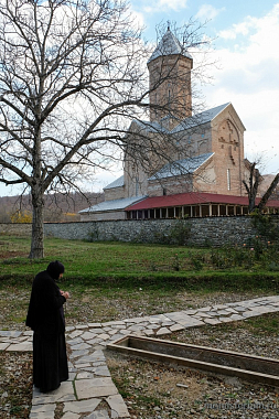 В последние годы все больше паломников из России приезжает в Грузию, чтобы увидеть древние христианские святыни страны, поклониться им. О том, как их здесь принимают, есть немало добрых искренних отзывов в Интернете. Но матушка вспомнила простой житейский пример, который, на ее взгляд, тоже может пополнить копилку современных свидетельств. Семья москвичей – муж и жена с маленькими детьми – добралась сюда на машине через Владикавказ. Они погостили, осмотрелись и уже в последний день своего пребывания на грузинской земле откровенно поведали матушке, как отговаривала от этой поездки главу семейства теща, остро переживавшая, что в Грузии с ними может случиться что-то нехорошее, вплоть до убийства. Мол, не те отношения сейчас, чтобы туда ехать… Супруги признались, что действительно на первых порах у них была какая-то настороженность, но уезжали они домой с совсем другим настроением. Особенно тронул их случай на базаре в Телави, о чем они с теплотой рассказали матушке-настоятельнице. Хотелось купить арбуз, и выбрали спелый, полосатый. Продавец спросил: «Вы откуда?» – «Из Москвы», – ответил мужчина. – «Ну, если вы из Москвы, возьмите еще один арбуз в подарок!» – сказал продавец. К этому по-человечески теплому факту хочется добавить другой. Из монастырской жизни. Около 20 лет в монастыре во имя Хахульской иконы Божией Матери подвизается насельница из России. Вся ее семья – потомственные ученые. Отец был известным геологом, да и сама она была по профессии геологом, а работала в Эрмитаже старшим научным сотрудником. Темой своей кандидатской диссертации выбрала такой аспект: минеральный состав красок грузинских фресок. Много лет ездила в Грузию. Воцерковилась в Санкт-Петербурге, пела в хоре грузинского храма. Духовно окормлялась у замечательного пастыря протоиерея Владимира Цветкова – руководителя и основателя Общества православной культуры имени святителя Игнатия (Брянчанинова). Однако задумавшись о монашеском пути, москвичка по рождению, санкт-петербурженка по месту проживания отправилась именно в Грузию. С митрополитом Давидом (Махарадзе) мать Елпида познакомилась еще когда лавра преподобного Давида Гареджeли в Гареджийской пустыне была музеем-заповедником, а он, будущий архиерей, начинал там работать архитектором-реставратором. Став насельницей грузинской женской обители, россиянка хотела выучить грузинский язык основательно. Современный и церковный. Основательно – не получилось. Возможности такой не было. К тому же церковный грузинский язык чрезвычайно сложный. А с монастырем, – с тем, чтобы почувствовать его своим родным домом на всю оставшуюся земную жизнь, – с этим все получилось. Что можно сказать? Для матери Елпиды одинаково дороги Россия и Грузия – два ее земных Отечества. Но еще более дорого ей Отечество Горнее, к которому она с сестрами и матушкой-настоятельницей устремляет свой внутренний взор. Сакральное – выше земного.