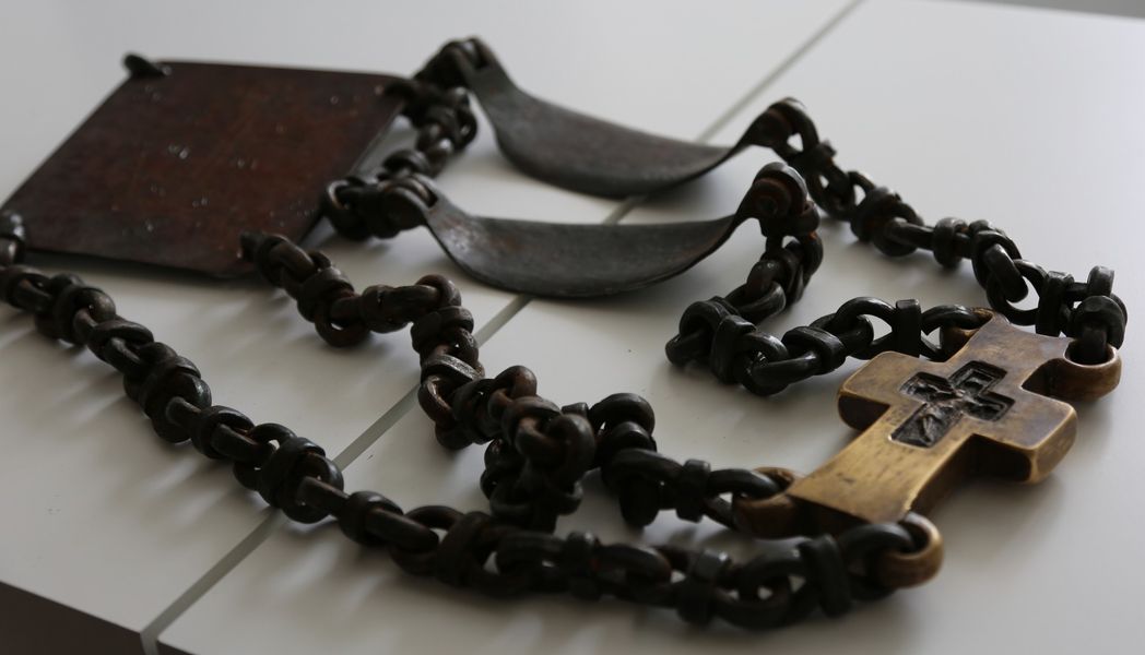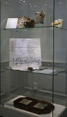 Возле каждого экспоната есть важный элемент экспозиции – этикетка с развернутой информацией. Кто пожелает, может обойти залы без экскурсовода, и, благодаря изложенным в этикетках сведениям, человек тоже совершит глубокое погружение в историю. Вот фрагмент подлинного надгробия Патриарха Никона… Возвращаясь по решению нового царя Федора Алексеевича в Ново-Иерусалимский монастырь после 15-летней ссылки, Патриарх Никон скончался в дороге недалеко от Ярославля. Туда, куда он в заточении стремился всей душой, привезли уже бездыханное тело. И хотя грамоты четырех Восточных Патриархов, разрешавшие Предстоятеля от всех прещений и восстанавливавшие его в патриаршем сане пришли лишь через год после его кончины, хоронили усопшего со всеми подобающими Первосвятителю почестями! Далее копия знаменитой парсуны большого размера «Патриарх Никон с клиром», где мы видим прижизненное изображение Патриарха, написанное с натуры. На широком подоконнике – копия тяжелых металлических вериг, которые носил Первосвятитель. Привлекает внимание подлинная гравюра с изображением голландского дипломата и путешественника Николаса Витсена – легендарной личности. Этот смелый иностранец сумел тайно пробраться в Ново-Иерусалимский монастырь в гости к находившемуся уже в опале Патриарху и провести с ним целый день. Подарил подлинник хороший друг возобновленного музея коллекционер Андрей Леонидович Кусакин, и есть надежда, что у монастырского музея в ближайшем будущем появится много замечательных друзей и много даров ему будет передано.
