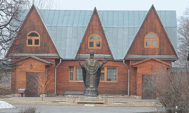 ...Хотя установка бронзового монумента святителю Николаю Чудотворцу состоялось не так давно – летом 2016 года, но представить нынче монастырь без «иконы в бронзе» (так назвал работы заслуженного художника России скульптора Сергея Михайловича Исакова Святейший Патриарх Кирилл) трудно. Кажется, что этот памятник особо близкому русской душе святому был тут изначально. Настолько органично разместился он рядом с детским корпусом, где живут 20 воспитанниц «Службы помощи семье и детям», а в считанных метрах находится деревянный Успенский храм, построенный в северных традициях современными мастерами из города Северодвинска! По рассказам настоятельницы обители игумении Неониллы (Фроловой), круг, в котором стоит святитель Николай с мечом в одной руке и храмом – в другой, был обустроен, оформлен лет 10 назад. Одно время в нем хотели сделать сень под крестом... Потом еще что-то собирались сделать... Экскурсии приходили, люди интересовались: «Что это такое? Для чего?» А когда в монастырь пришла фотография скульптурной работы батайского мастера (Сергей Михайлович живет и работает в городе Батайске Ростовской области), сестры объездили на машине всё село: смотрели, куда можно поставить скульптуру. И в какой-то момент поняли, что именно на территории монастыря, в круге, вызывающем вопросы, ее место. Что интересно: ряд памятников святителю Николаю работы Исакова стоит по периметру российских границ, включая Курильские острова, Анадырь, Калининград, Майкоп. А памятник на Земле Франца Иосифа является самым северным памятником в мире (в 600 километрах от Северного полюса). И еще одно примечание: первым монастырем, где была установлена и освящена скульптура святителя Николая, созданная Исаковым, стал Ачаирский Крестовый женский монастырь Омской епархии. Теперь и в Никольском Шостьенском ставропигиальном женском монастыре на Рязанской земле стоит бронзовый монумент Небесному покровителю обители.
