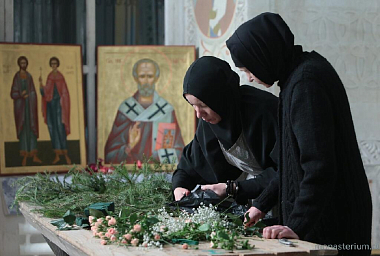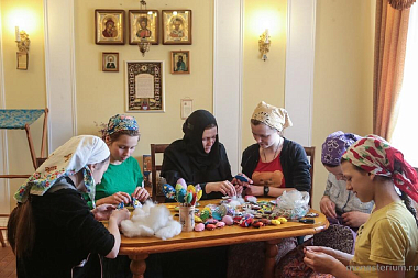 С большой теплотой и, смею утверждать, с каким-то внутренним восторгом рассказывала Елена, как ее дети вместе с другими ребятишками под руководством инокини Параскевы участвовали в росписи Никольского храма. Причем старшие даже под куполом центрального престола в честь Вознесения Господня трудились! Так вместе, сообща, сестры и миряне, готовили храм к масштабному торжественному событию, состоявшемуся недавно, 7 мая. Хочется добавить, что иерей Владимир Постников в этот день был удостоен возведения в сан протоиерея. Именно отца Владимира, по словам сестер, можно считать первым «монастырским» переселенцем. Он переехал сюда из столицы с матушкой Надеждой в самом начале, и на его глазах, с его участием происходило зарождение монашеской общины, ее становление и преобразование в монастырь. Ставропигиальный.