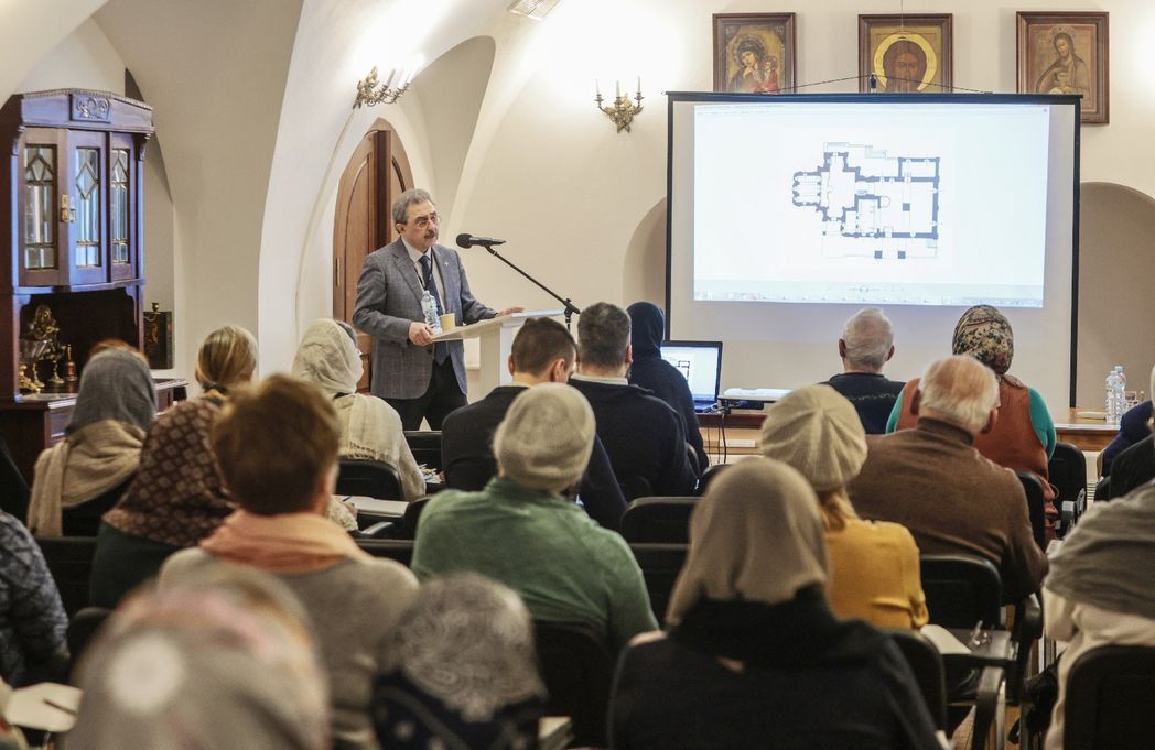 Нынешнее научное собрание, названное «История Московского Ивановского монастыря: строители и ктиторы», объединило в небольшом конференц-зале (он находится в подклете Иоанно-Предтеченского собора, рядом с музейной экспозицией) историков, археологов и искусствоведов, архитекторов, реставраторов, филологов, а также насельниц монастыря, приобретших за годы исследовательских трудов уникальный опыт и профессионализм. По традиции открыла заседание казначея обители монахиня Анувия (Виноградова).