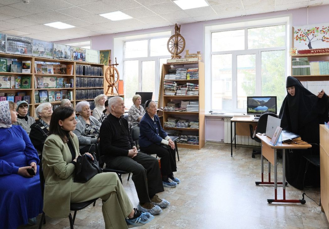 Что еще заинтересовало любителей духовного просвещения Истринского района, собравшихся в библиотеке? Приглашение в поездку по памятным местам, связанным с основательницей монастыря игуменией Евгенией. У сестер Борисоглебского Аносина ставропигиального женского монастыря стало доброй традицией ездить с прихожанами обители в бывшие имения князей Мещерских на Смоленской и Брянской земле. Из Павловской Слободы, по рассказу инокини Иулиании, тоже некоторые верующие там побывали. Вообще монастырь периодически организовывает такие паломничества, начиная с того момента, когда в теперь уже далеком 2014 году по благословению матушки Марии сестры предприняли поездку в те края и стали участницами первой после длительного перерыва Божественной литургии в селе Гореново. Служба проходила в храме, оборудованном из строительного вагончика, – и на том месте, где некогда стоял Троицкий собор, заложенный Николаем Андреевичем Тютчевым и достраивавшийся его сыном Николаем, братом игумении Евгении. На сегодня законсервирован открытый во время раскопок фундамент разрушенной церкви, установлен Поклонный крест, основание-голгофа которого сложено из валунов, заложенных некогда в основании храма. Установлены и баннеры, посвященные истории села и Троицкого храма.