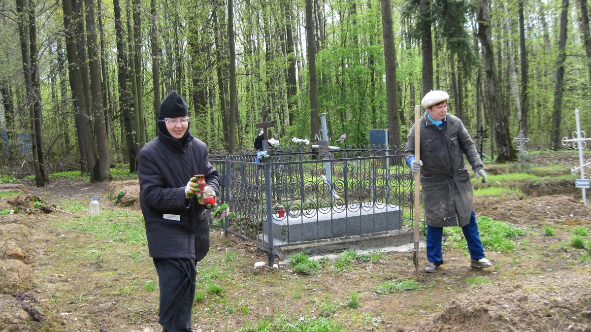 ...На хуторе Ивановского монастыря, где деревянный Сергиевский храм выстроен заново и теперь относится к Московской областной епархии, нас поджидала Наталья Николаевна Рождественская. Вот уже несколько лет она с монахиней Тавифой (и молодая инокиня Софрония недавно подключилась) ухаживает за кладбищем, где упокоилось более 15 Ивановских сестер и последняя настоятельница Московского Ивановского монастыря игумения Епифания (Митюшина). Убирая мусор в ограде кладбища, высаживая цветочки на могилке Матушки, монахиня Тавифа продолжила рассказ об отце Владимире. С большой теплотой сообщила, что он со своей матушкой досматривал почти ослепшего матушкиного отца, по состоянию здоровья вышедшего за штат, но продолжавшего служить в Сергиевской церкви, пока сюда не назначили отца Владимира. Известно, что священник Петр Скворцов 36 лет прослужил в разных приходах Московской епархии, и у него было 14 или 15 детей. Сегодня мы в первую очередь вспоминаем его как отца и тестя двух новомучеников – протоиерея Алексия Скворцова и протоиерея Владимира Смирнова. К слову сказать, поступление последнего в Московский государственный университет в 1917 году мать Тавифа увидела в таком свете: видимо, батюшке как ревностному служителю алтаря Христова захотелось быть готовым к грамотной юридической защите прав Церкви, вот он и поступил. Предчувствие катастрофы возникло тогда у многих, но кто мог знать, что все нравственные и юридические законы будут попраны и залитая кровью страна не скоро очнется от морока?