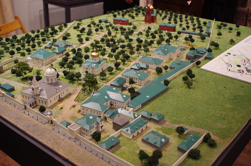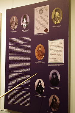На представленных в экспозиции стендах и витринах кропотливо собраны все эти указы, исторические виды монастырей, планы их реконструкции. Вступив в управление Алексеевским монастырем в феврале 1871 года, новоназначенная игумения уже в мае того же года, в праздник Святого Духа, в присутствии преосвященного Леонида совершает закладку большого двухэтажного корпуса, а 21-го ноября он уже был освящен митрополитом Иннокентием. Это первое здание, возведенное игуменией Антонией, должно было послужить началом общежития, принципы которого и вводила матушка в обители. В нижнем этаже постройки были устроены кухня и общая трапеза для монашествующих, а в верхнем – мастерские: золотошвейная, живописная и переплетная.