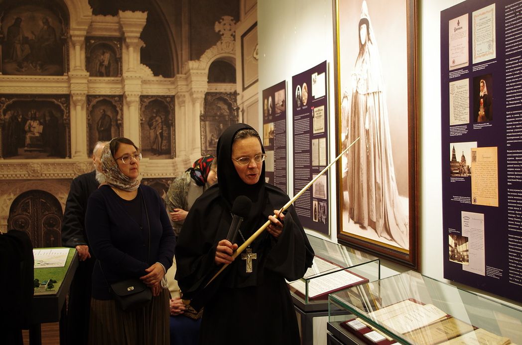 Потом, когда Балканский вопрос был урегулирован, при обители открыли школу-приют для 17 девочек (в память избавления Их Императорских Величеств от угрожавшей опасности 17 октября 1888 года, когда царская семья чудом уцелела в катастрофе царского поезда под Харьковом). В монастырскую школу-приют принимали, «как сирот, так и дочерей беднейших членов духовенства Московской епархии». Некоторых из воспитанниц – человек пять-шесть одновременно – на попечение матушки Антонии присылало Елизаветинское благотворительное общество, состоящее под покровительством Ее Императорского Высочества Великой Княгини Елизаветы Федоровны. Матушка Антония была знакома практически со всем цветом тогдашней столицы, так что в открывшейся экспозиции можно встретить множество портретов выдающихся представителей как церковной иерархии, так и благочестивой части светского общества тех времен.